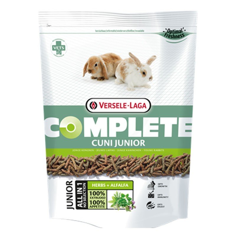 Versele Laga Cuni Complete Junior es un pienso para conejos en fase de crecimiento (6-8 meses de edad). Es un alimento en forma de croquetas ricas en proteínas. Cuenta con un alto porcentaje de contenido proteico, además de largas fibras y heno para favorecer el crecimiento. Las hierbas de su receta también favorecen la digestión de su mascota.