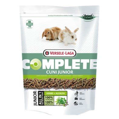 El pienso para conejos jóvenes Versele Laga Complete Cuni Junior viene presentado en forma de croquetas muy ricas en proteínas para la etapa de crecimiento de los conejos, especialmente hasta los 6 u 8 meses de edad. Además incluye un aporte extra de fibras largas y heno que ayuda el crecimiento, de igual modo las hierbas para una buena digestión y asimilación de los nutrientes. Todos los ingredientes de la receta aportan vitaminas, minerales y aminoácidos para beneficiar el sistema inmunológico. La flora intestinal de su mascota se verá estimulada gracias las largas fibras con probióticos. Incluye ácidos grasos omega 3 y 6, esto favorece la suavidad y el brillo de su pelaje.