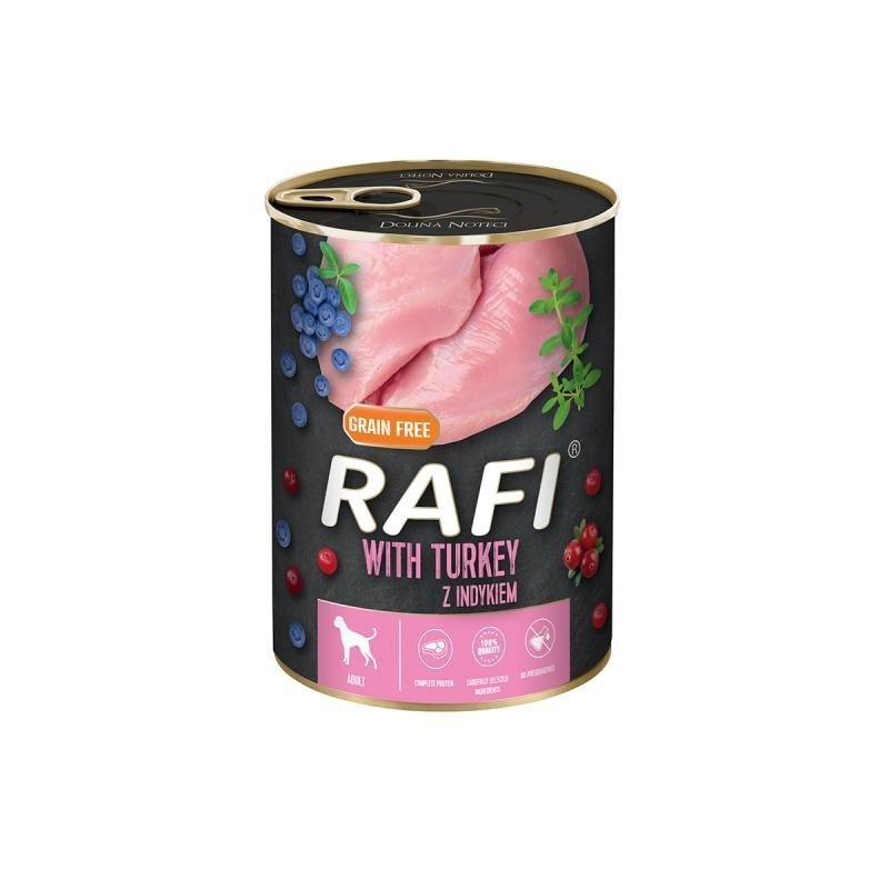 Rafi Paté de Pavo y Arándanos es la opción perfecta para satisfacer todas las necesidades nutricionales de tu perro, desarrollada según las recomendaciones nutricionales modernas. ¡Prueba esta opción saludable y sabrosa hoy mismo!