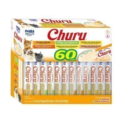 Consiente a tu gato con las mejores recetas de Inaba Churu Variedades de Pollo, ahora en un formato de 60 sobres variados.