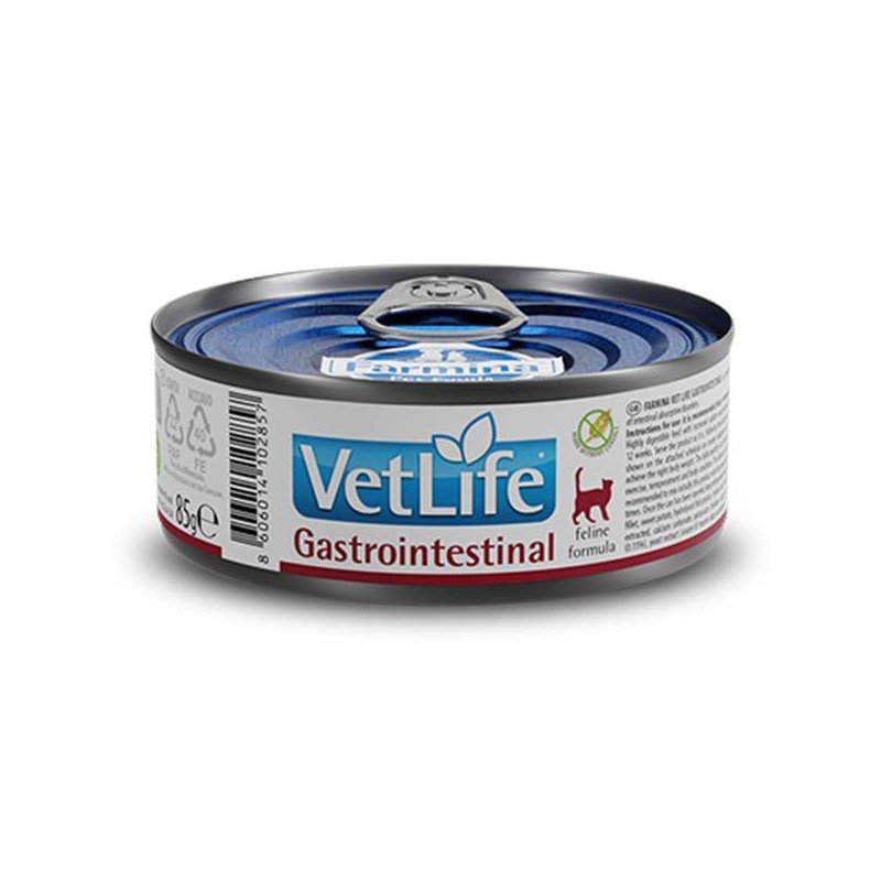 Farmina Vet Life Gastrointestinal es un alimento húmedo dietético formulado para ayudar a gatos con trastornos digestivos agudos, mejorando la absorción de nutrientes y promoviendo una digestión saludable.