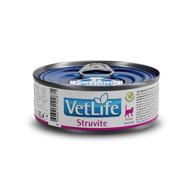 Farmina Vet Life Struvite es un alimento húmedo dietético especialmente formulado para ayudar en la disolución de cálculos de estruvita y reducir el riesgo de recurrencias en gatos.