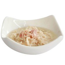 Pollo fresco deshuesado 38.57%, Atún Bonito 2.86%, Almidón de Tapioca 1.94% Fructooligosacáridos 120mg/kg.