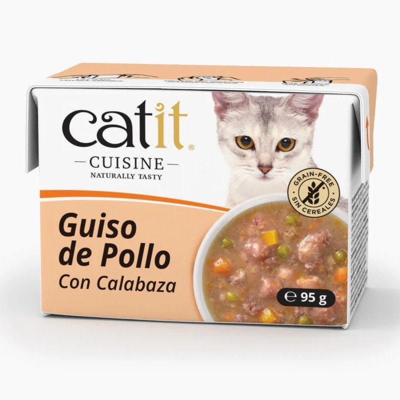 Catit Cuisine Guiso de Pollo y Calabaza es una receta húmeda deliciosa y equilibrada, ideal para complementar la alimentación diaria de tu gato. Elaborado con ingredientes naturales, sin cereales, sin gluten ni aditivos artificiales, este guiso ha sido cocinado suavemente para conservar al máximo los nutrientes y sabores auténticos.