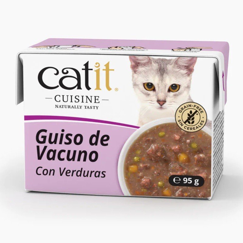 Catit Cuisine Guiso de Vacuno y Verduras es una receta húmeda deliciosa y equilibrada, ideal para complementar la alimentación diaria de tu gato. Elaborado con ingredientes naturales, sin cereales, sin gluten ni aditivos artificiales, este guiso ha sido cocinado suavemente para conservar al máximo los nutrientes y sabores auténticos.