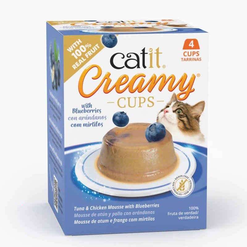 Mima a tu gato con un capricho irresistible y saludable. Las Catit Creamy Cups de atún, pollo y arándanos combinan una suave mousse con auténticos trozos de fruta, ofreciendo una experiencia gourmet llena de sabor natural.