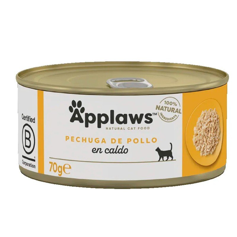 Applaws Lata con pechuga de pollo es una comida húmeda natural y de excelente calidad para gatos adultos. Este producto premium con un altísimo contenido de carne incluye únicamente ingredientes naturales.